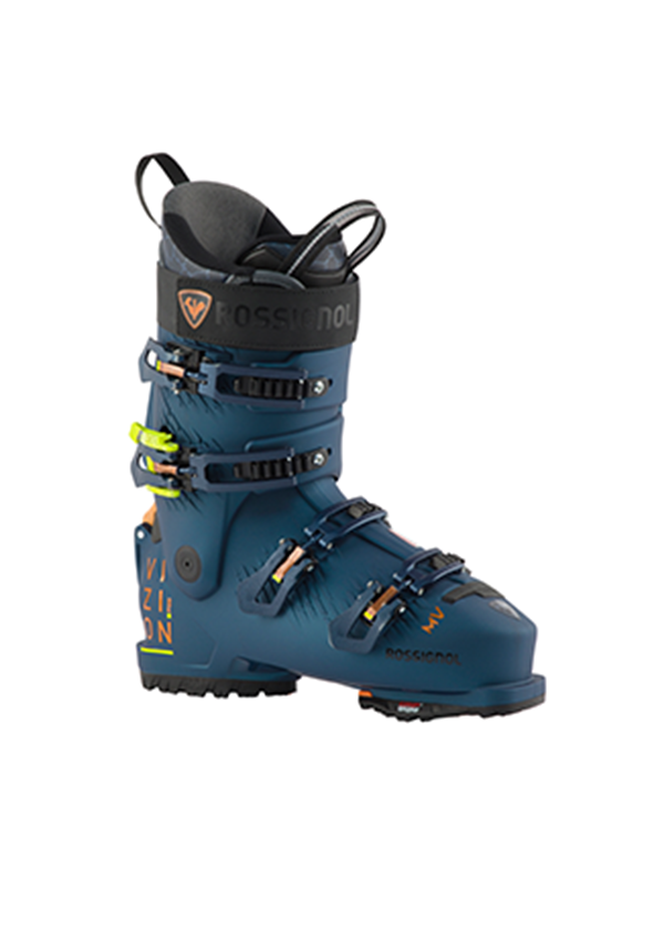 Made for skiers looking for a medium volume fit and medium flex, the Rossignol Vizion 4B Pro 120 MV ski boots feature a ground-breaking overlap shell design that opens wide in the back for unparalleled slip-on ease thanks to an innovative spoiler and spine mechanism. The system creates wide articulation at the cuff and complete locked-in support for precise power transfer and full downhill performance with unmatched ease of use. Just slip in, buckle up and ski.