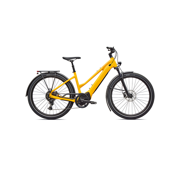 - Équipé de garde-boue Drytech, d’éclairages LED avant et arrière, et d’un porte-bagages arrière HD Rack d’une capacité de 27 kg. Le porte-bagages arrière est compatible avec un porte-bébé, et le vélo peut également tracter une remorque fixée sur l’axe traversant de la roue arrière.